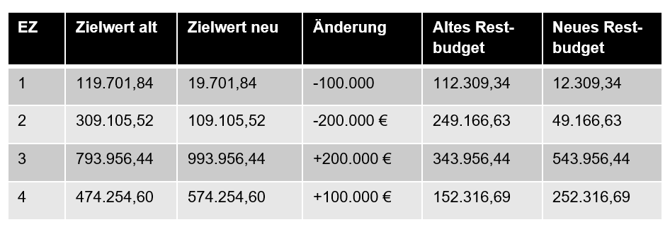 Mit Beschluss vom 29.02.2024 können von den definierten Einzelbudgets der jeweiligen Entwicklungsziele um bis zu 20% abgewichen werden, soweit die Gesamtsumme der zur Verfügung stehenden Fördermittel nicht überschritten wird.